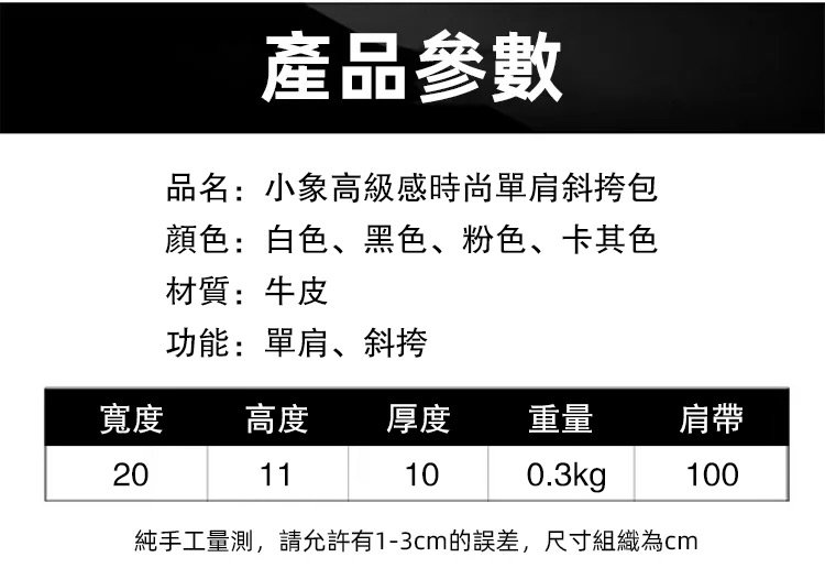 20分鐘前小象高級感時尚單肩斜挎包 - 一入组NT$799